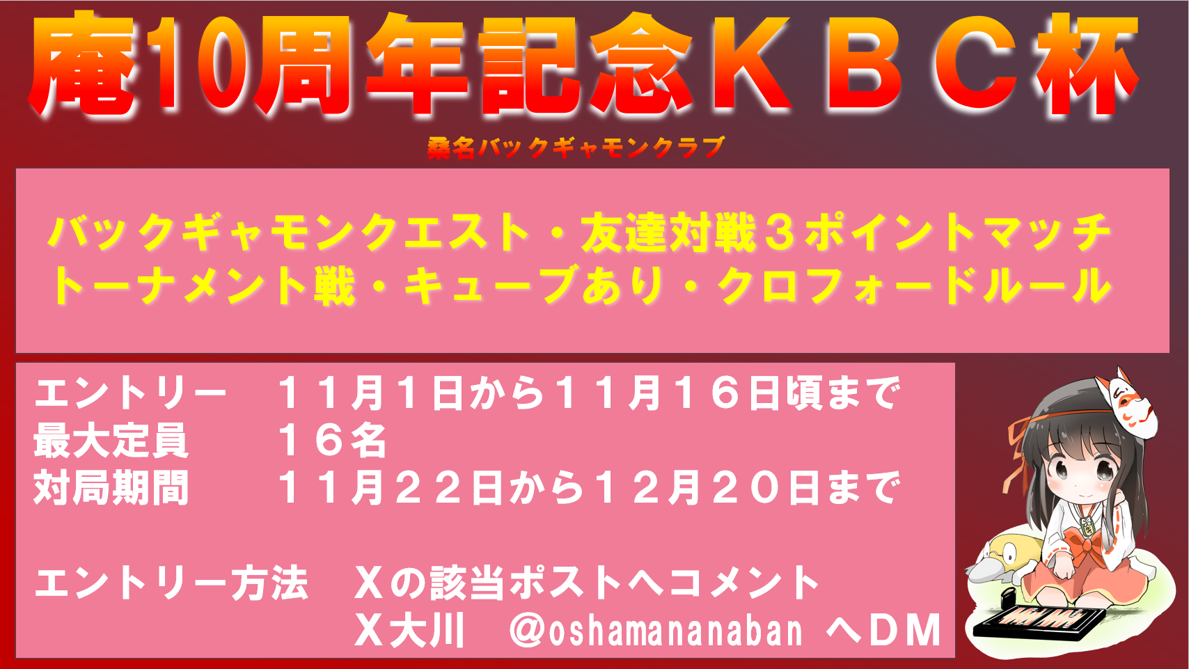 11/1 庵10周年記念KBC杯(エントリー受付11月1日~11月16日)を公開しました