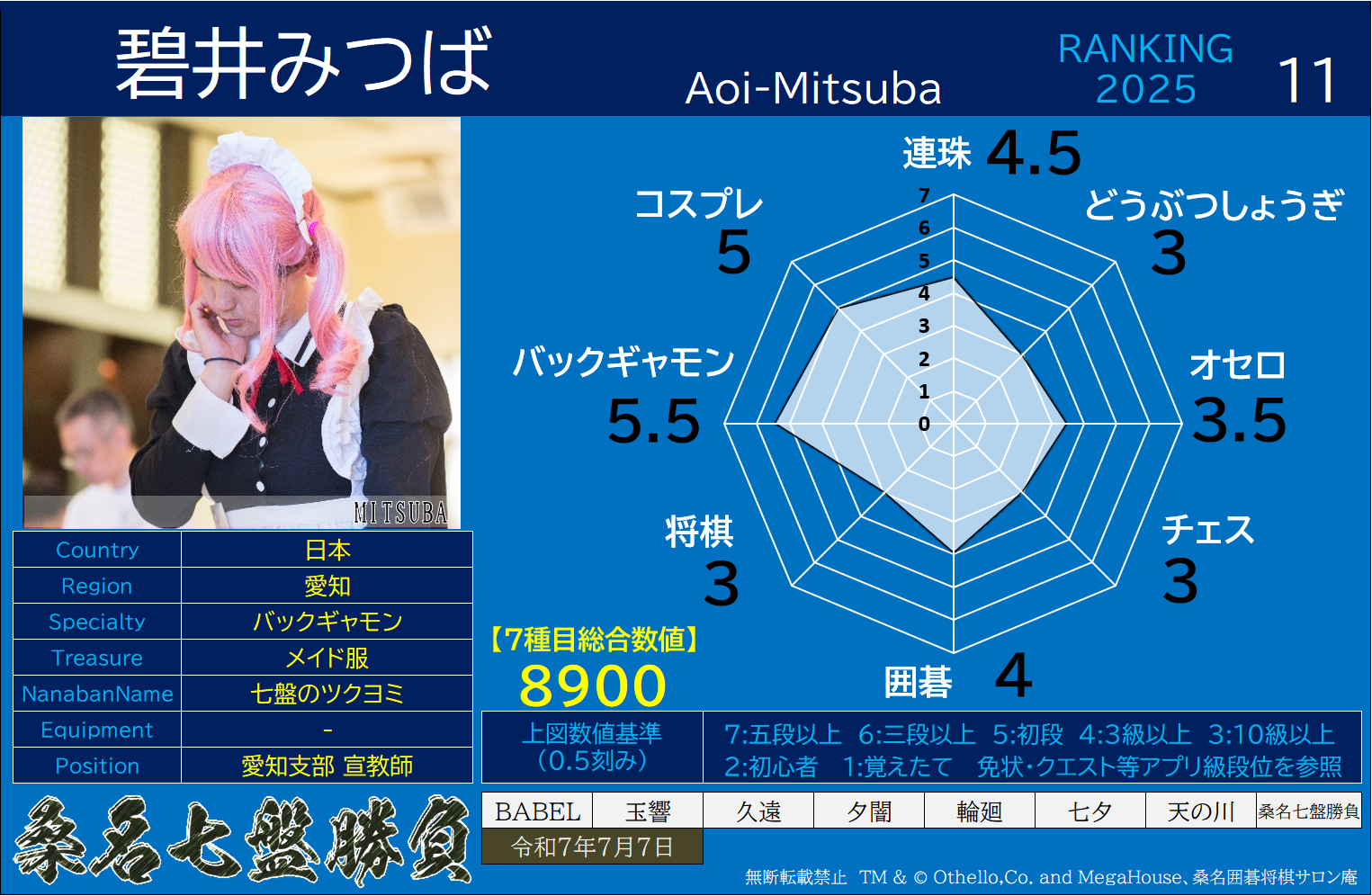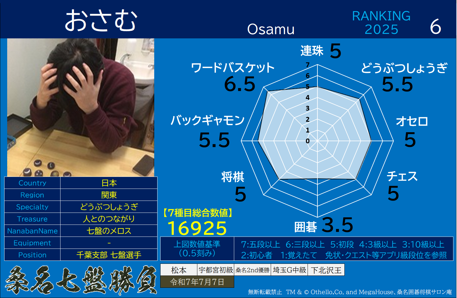 備考 桑名七盤勝負フリー公式戦、桑名七盤勝負公式称号戦にご参加いただけます