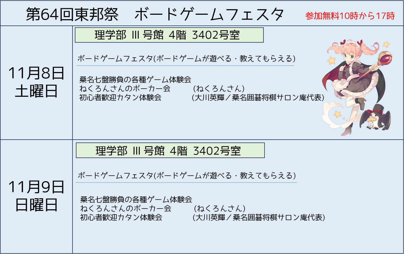 【11月8日(土) 理学部 Ⅲ号館 4階 3402号室】
