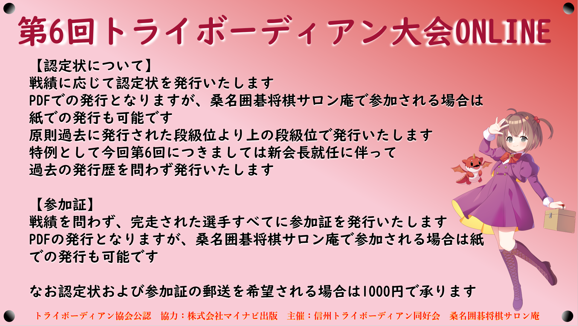 ①桑名囲碁将棋サロン庵で参加される方は紙の認定状をお渡しします