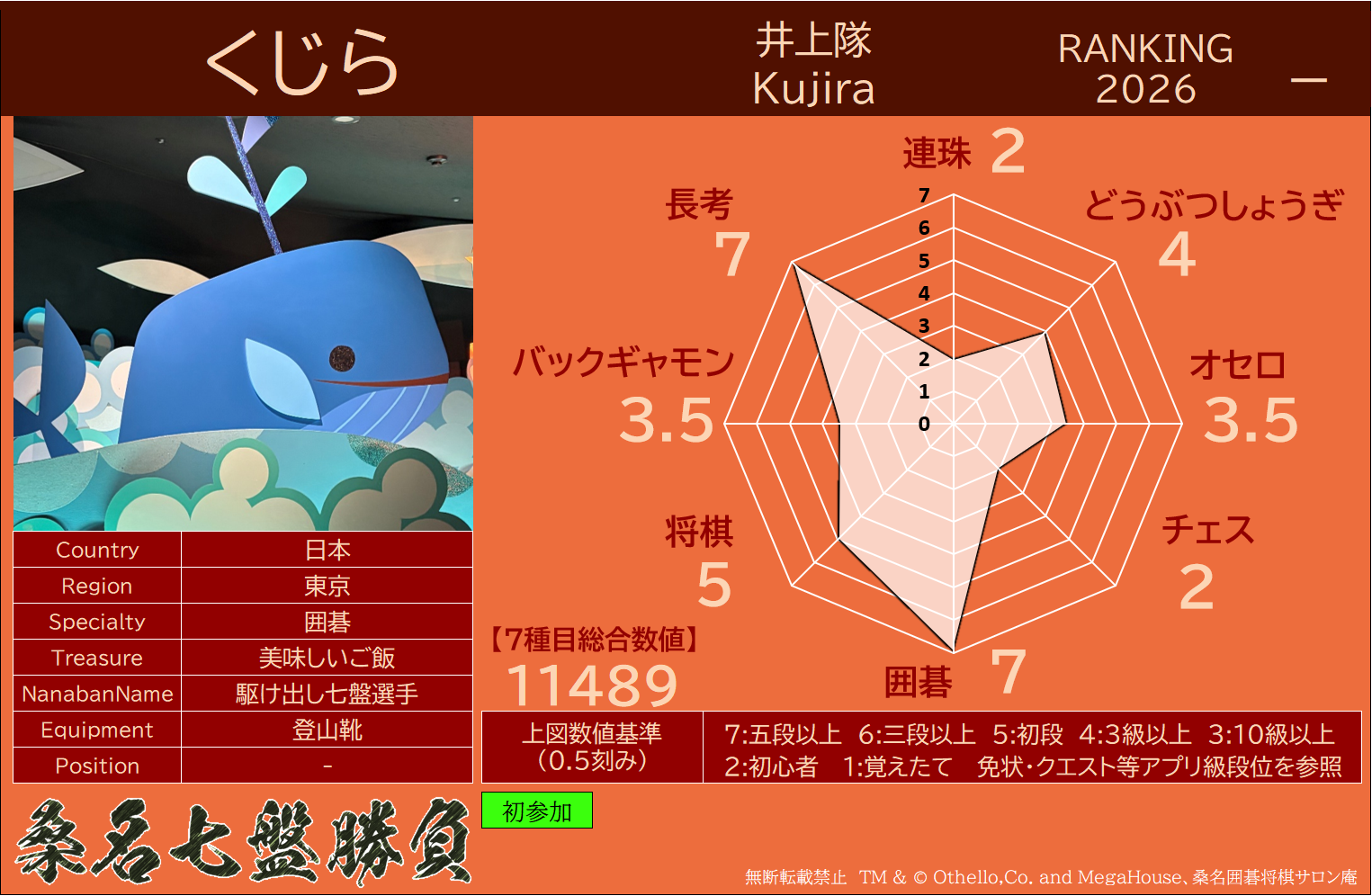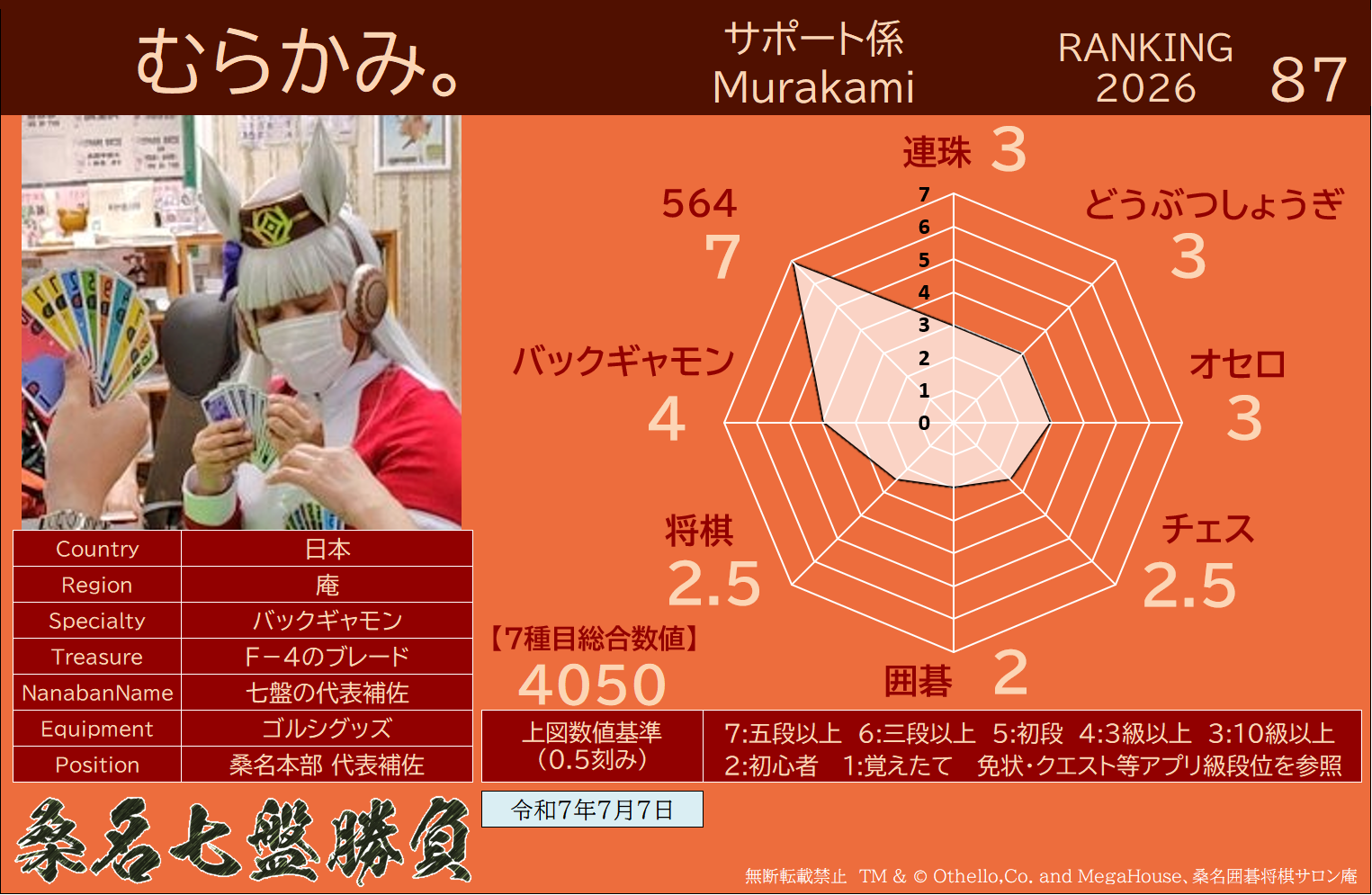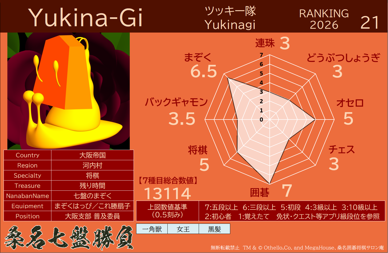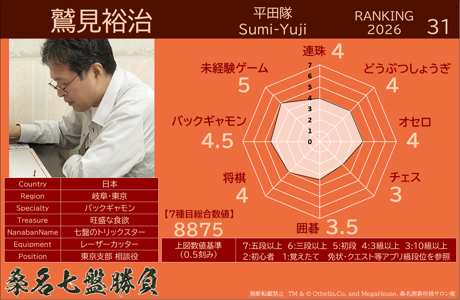・連珠・どうぶつしょうぎ・オセロ・チェス・9路盤囲碁・将棋・バックギャモンなどの七種目同時対局(持ち時間45分/切れ負け)