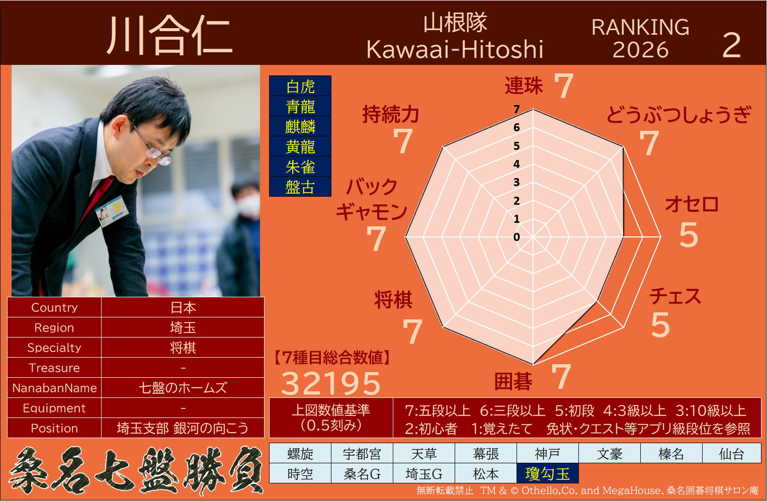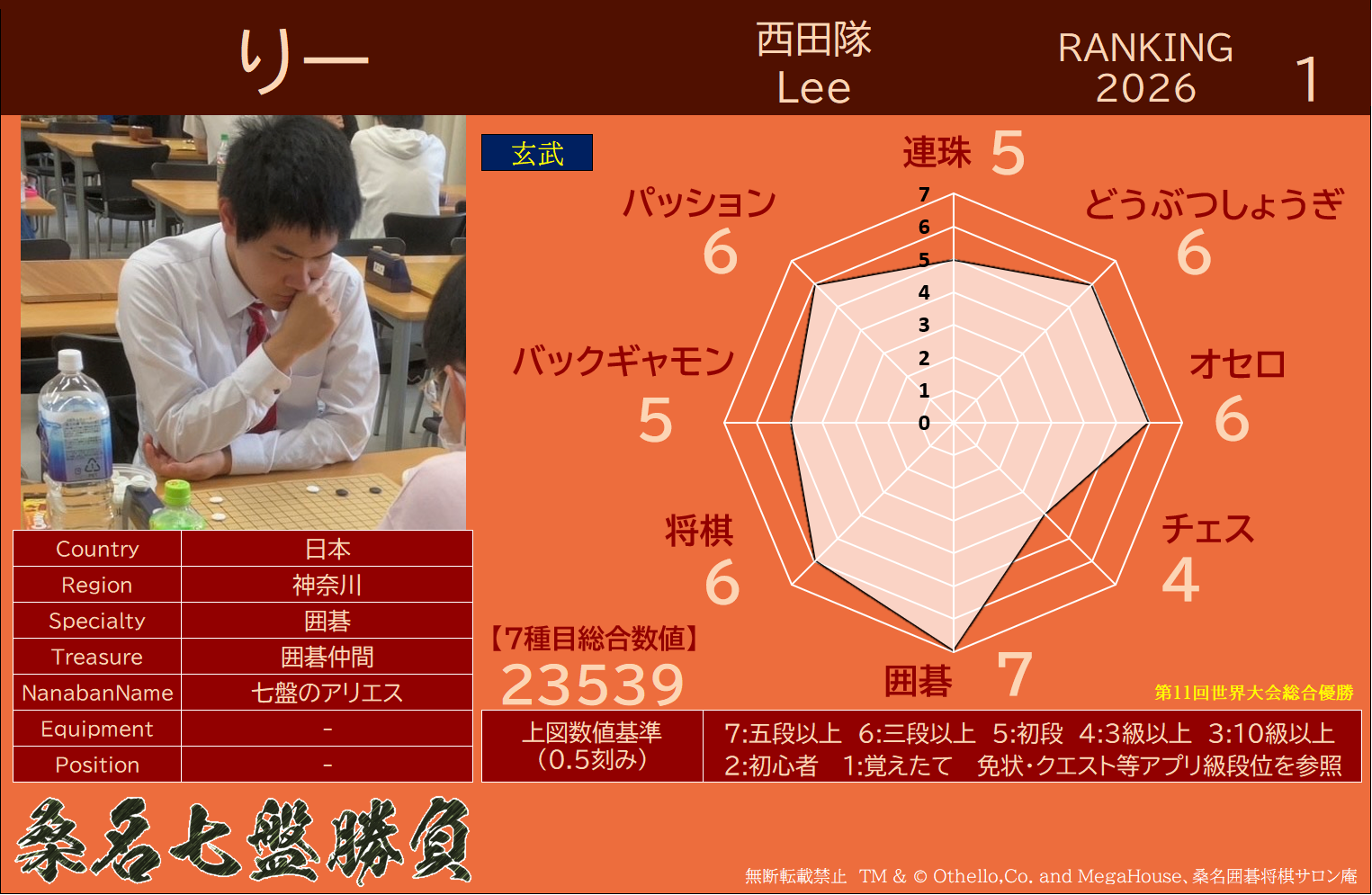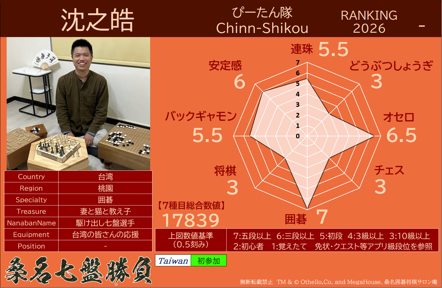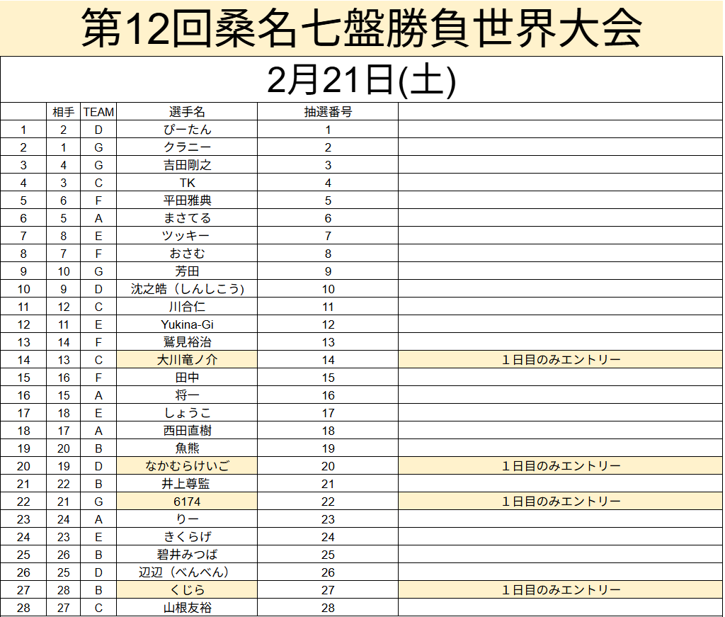 備考 本大会で行われた対局は公式戦とし、桑名七盤勝負世界ランキングに反映いたします