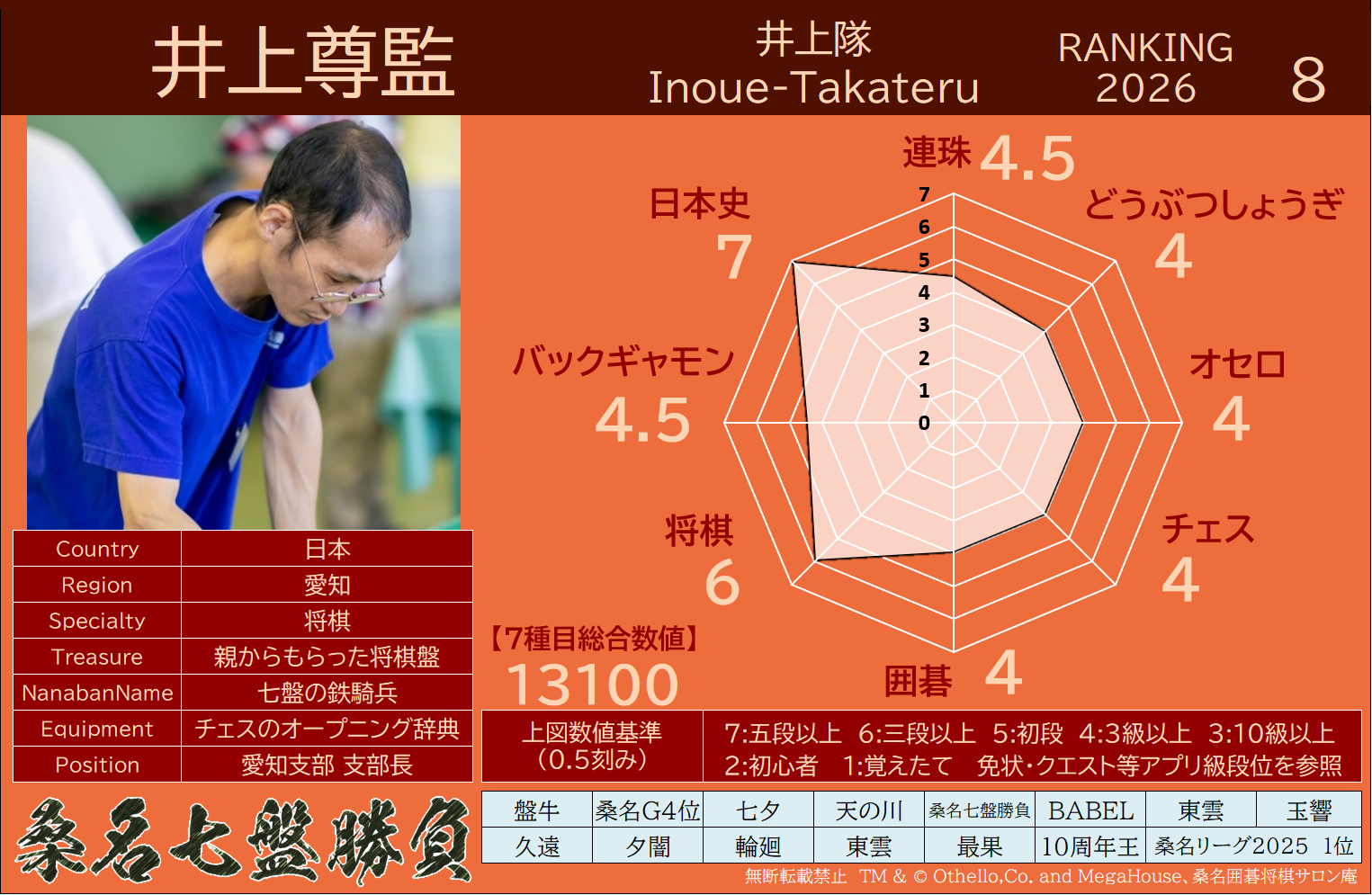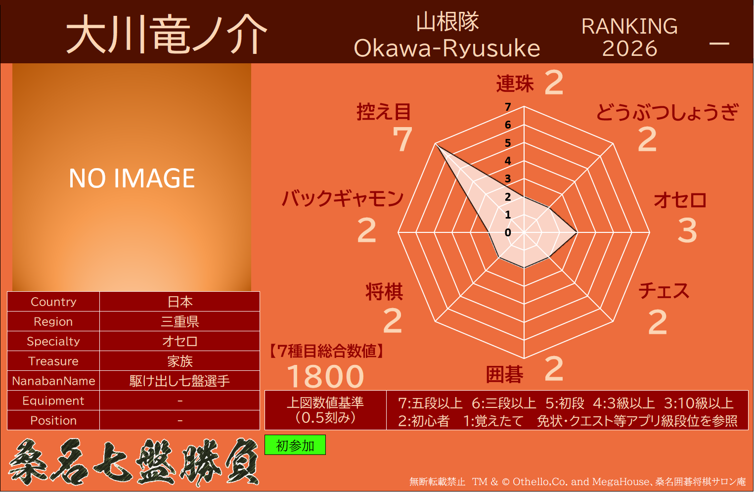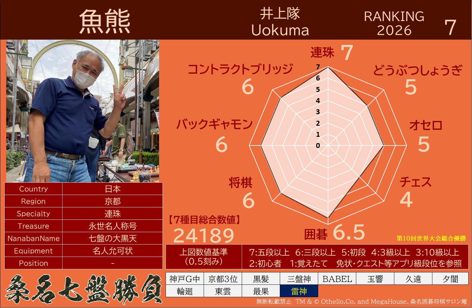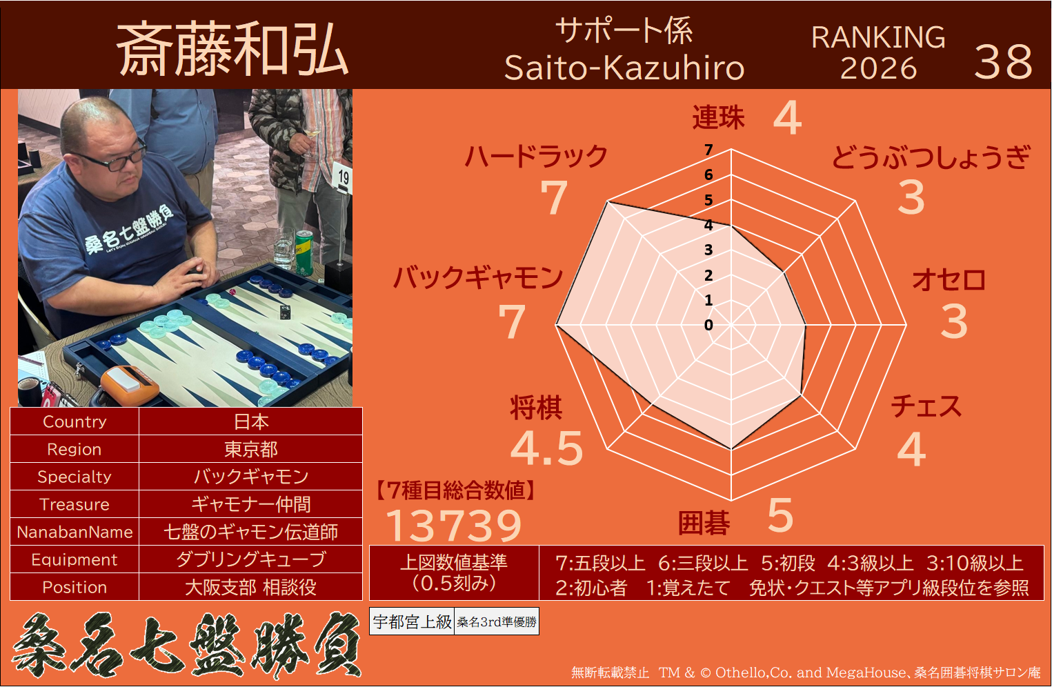 備考 本大会で行われた対局は公式戦とし、桑名七盤勝負世界ランキングに反映いたします