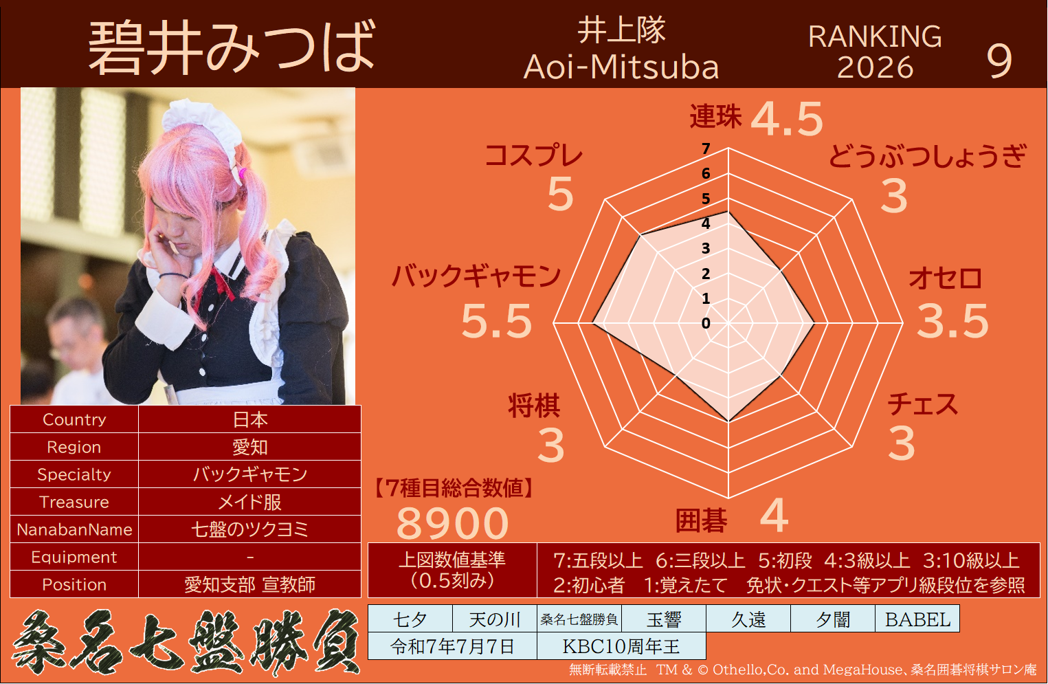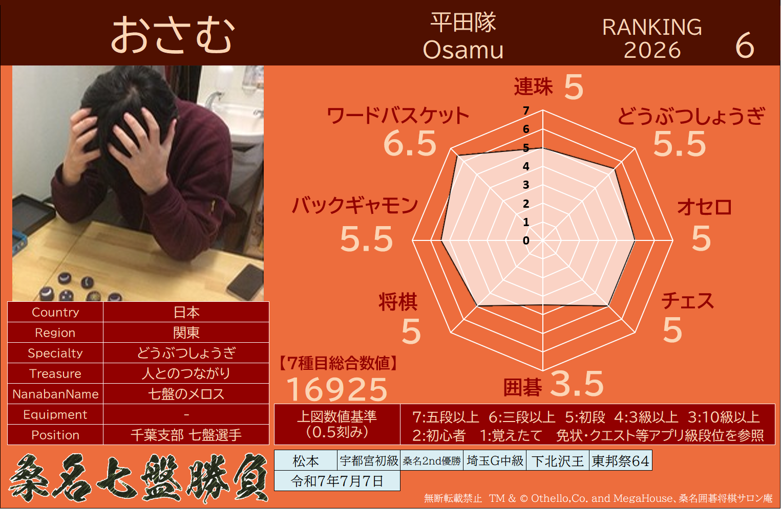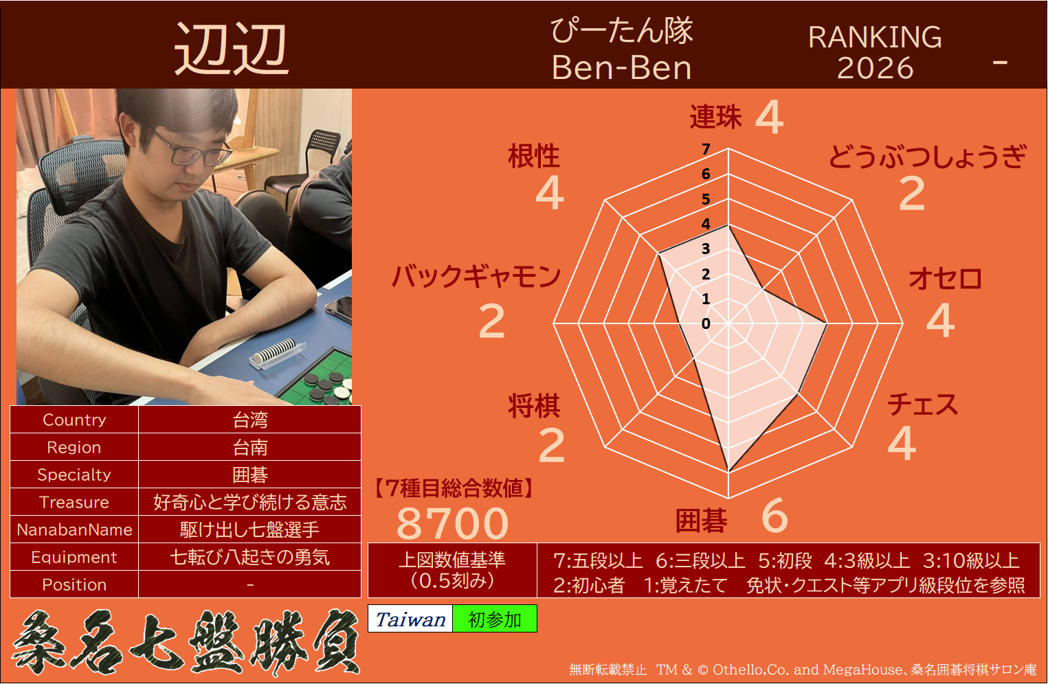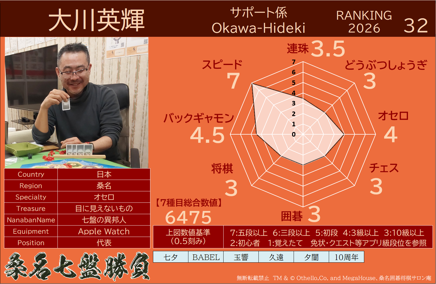 備考 本大会で行われた対局は公式戦とし、桑名七盤勝負世界ランキングに反映いたします