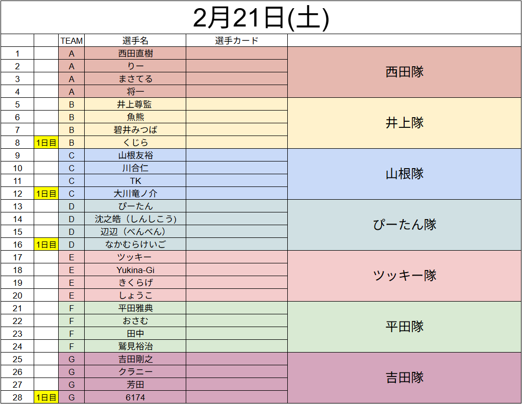 ※両日で原則同じ対戦カードは発生しないように序列を調整、変更する場合がございます