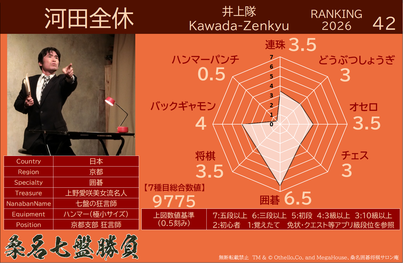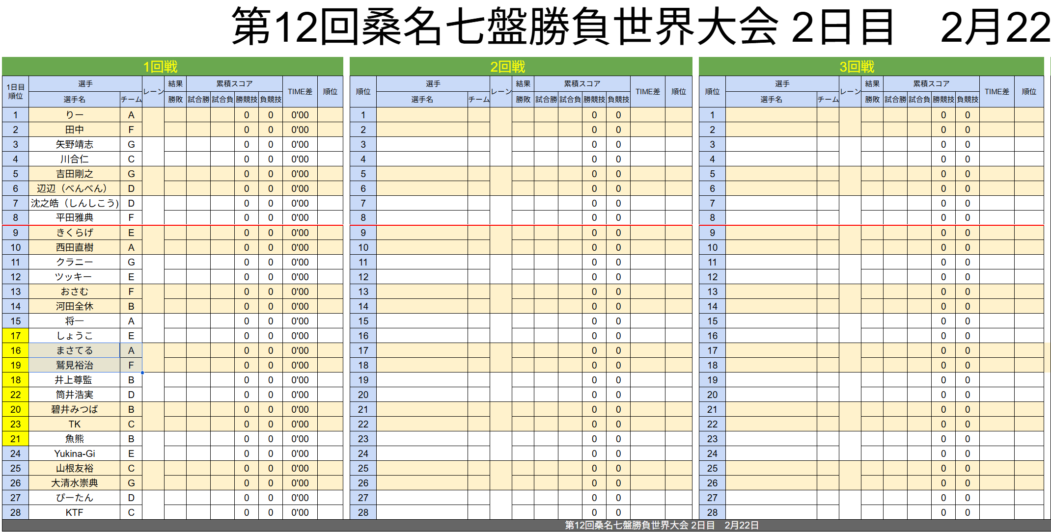 備考 本大会で行われた対局は公式戦とし、桑名七盤勝負世界ランキングに反映いたします