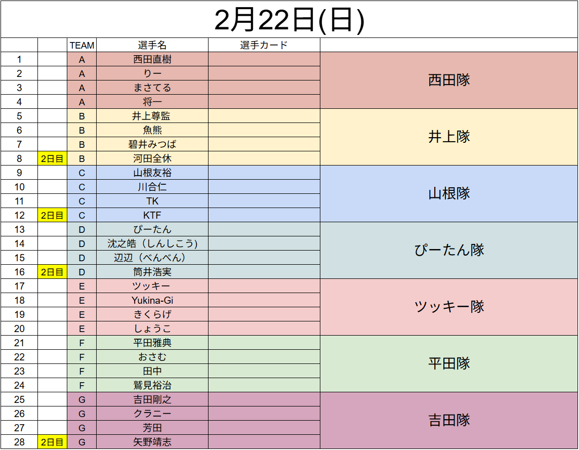 ※両日で原則同じ対戦カードは発生しないように序列を調整、変更する場合がございます